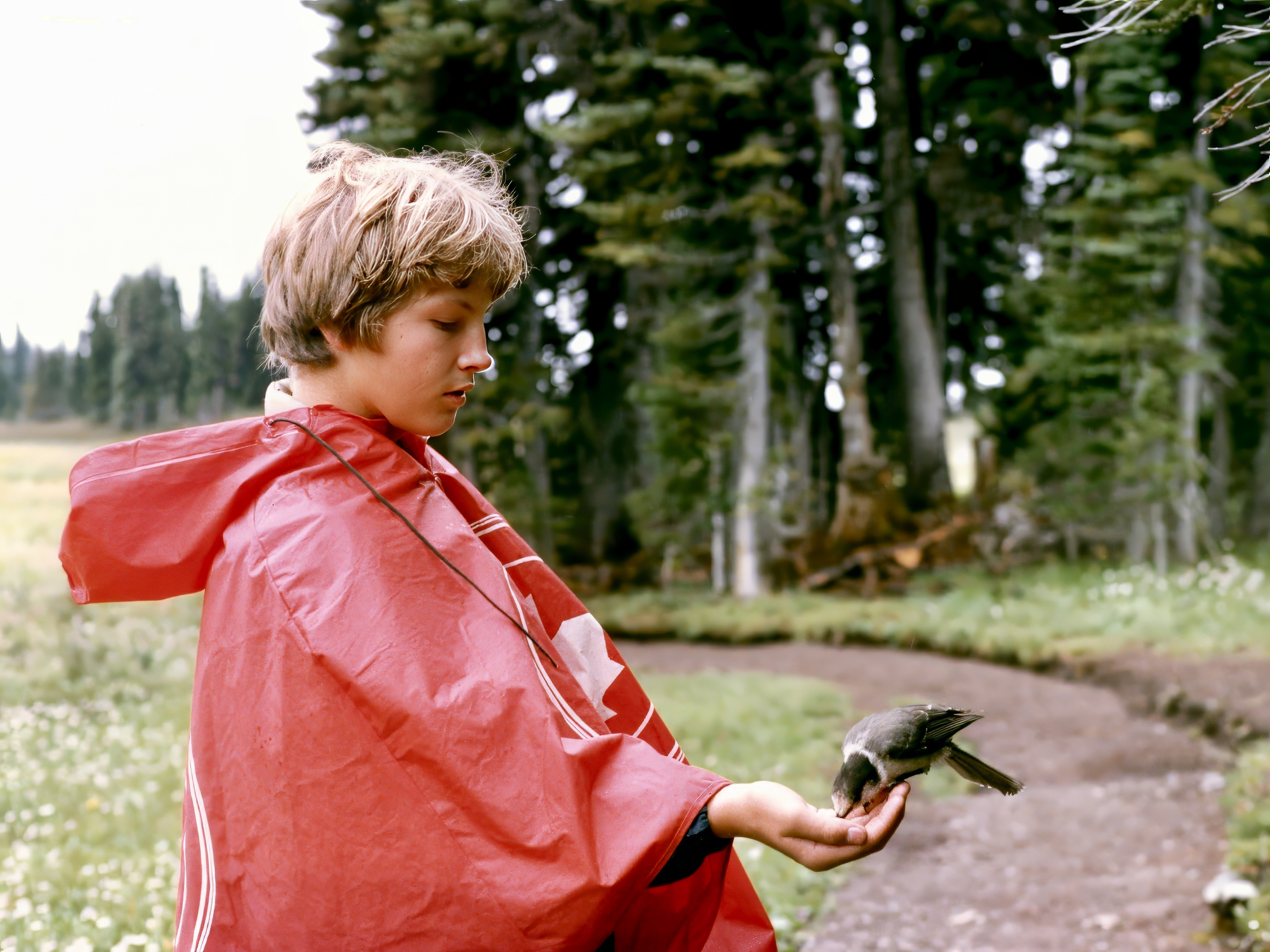 Nedjo Feeding a Whisky Jack ~ Taylor Meadows, Garibaldi Provincial Park, summer 1981