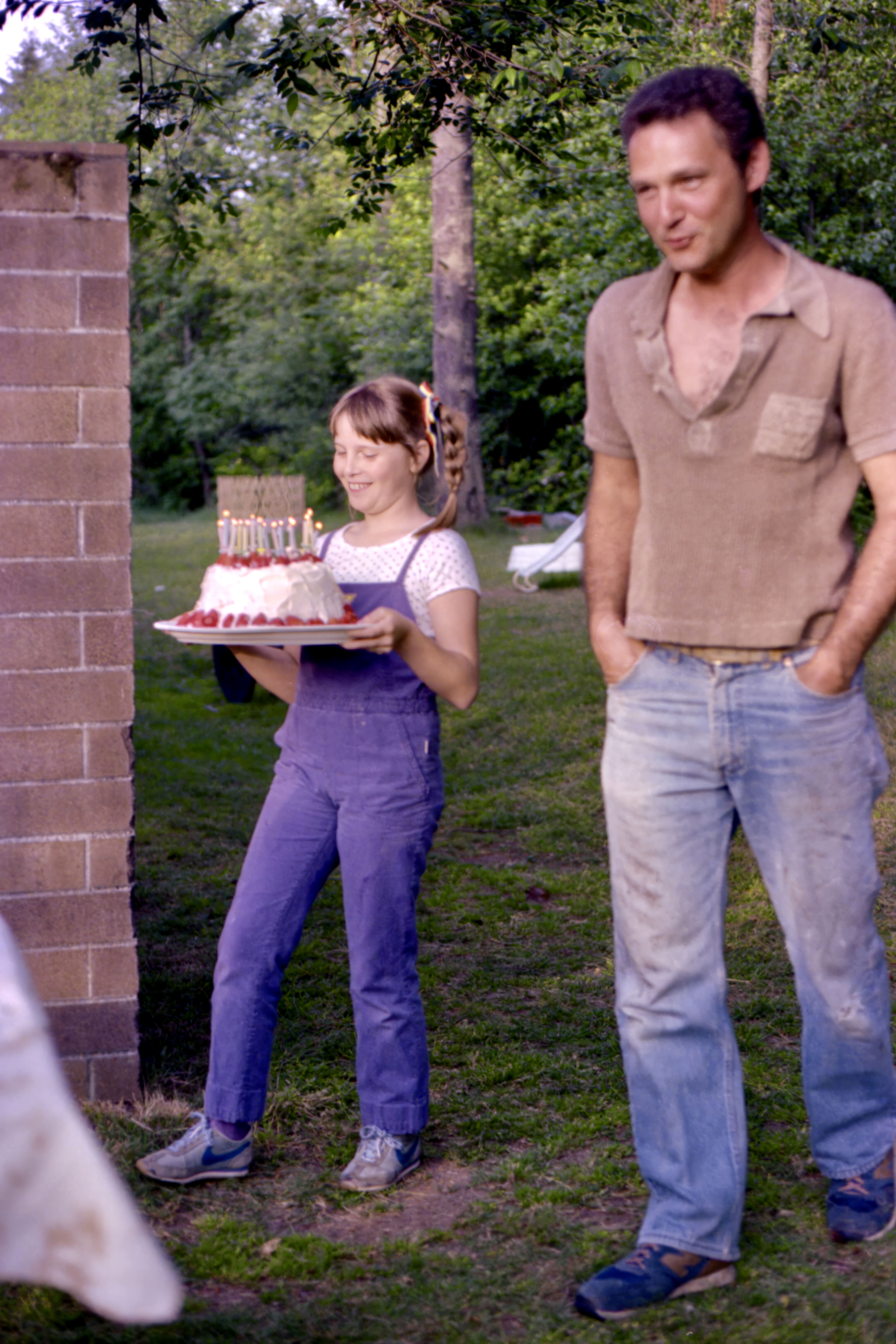 Terra Carries the Cake at Liza’s 16th Birthday Party ~ UBC Student Housing (where we lived while Starla was enrolled in her doctoral program), June 8, 1981