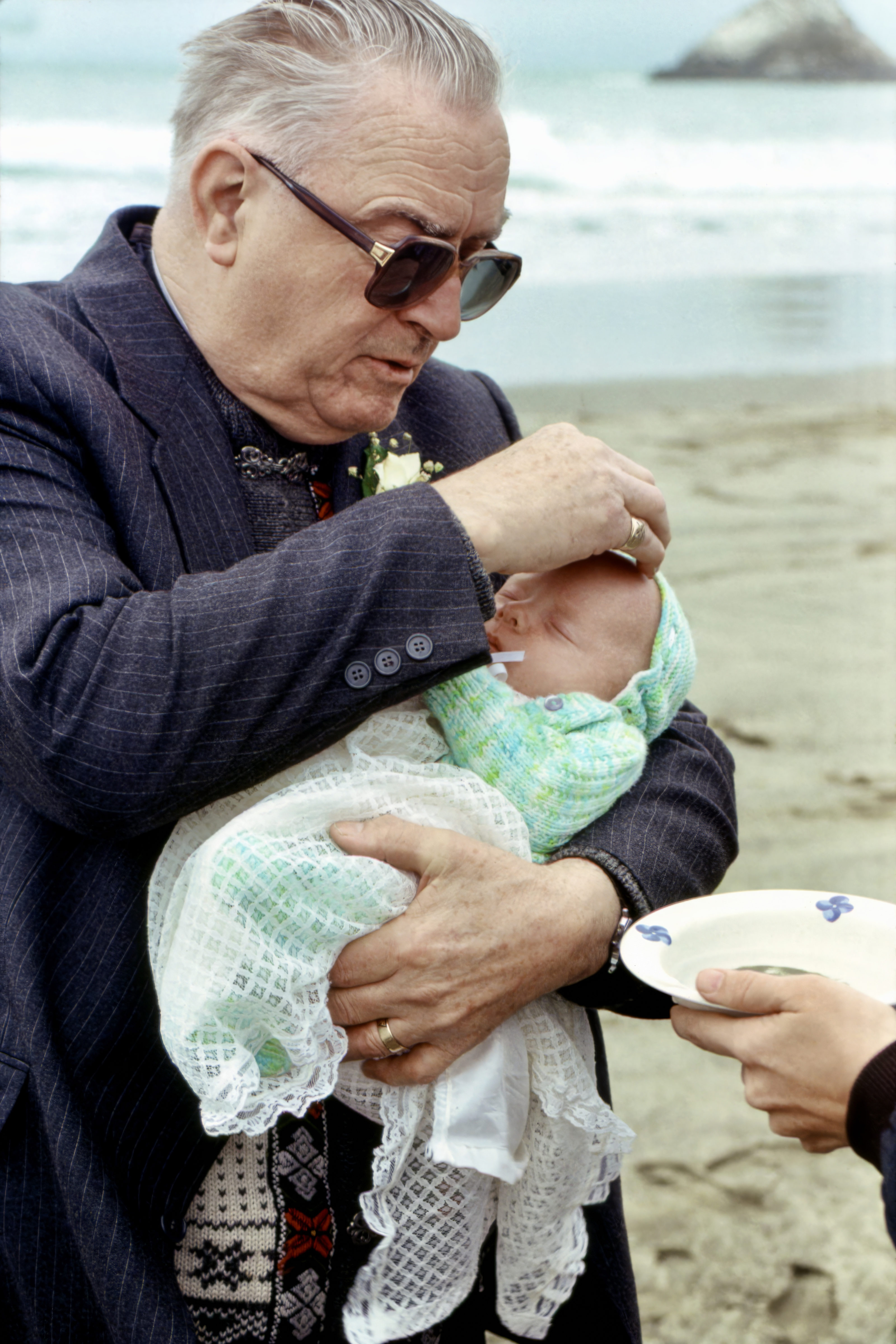 Laurence (who was a United Church minister) Baptizing Nico (Cheryl’s younger son) ~ San Francisco, Easter 1988