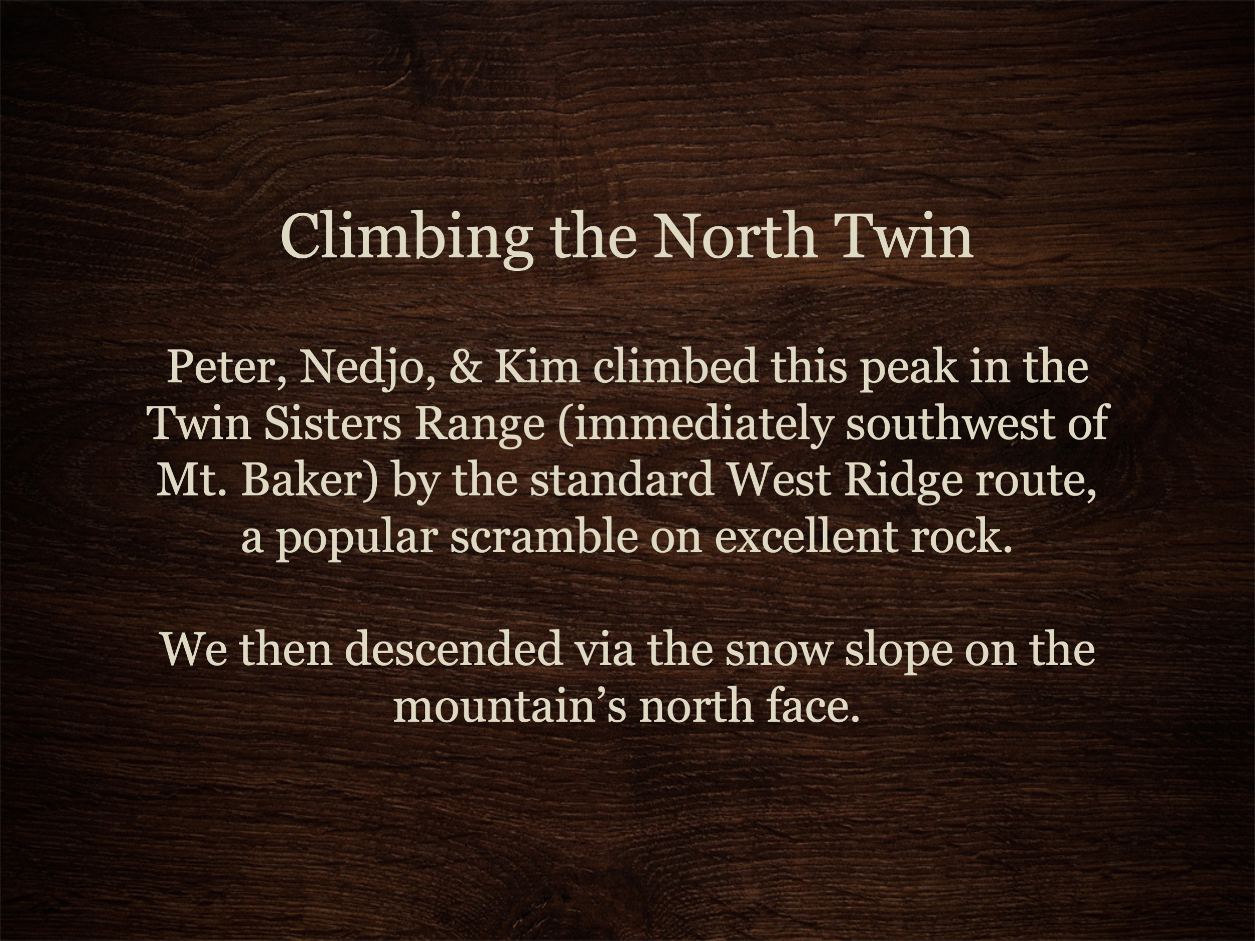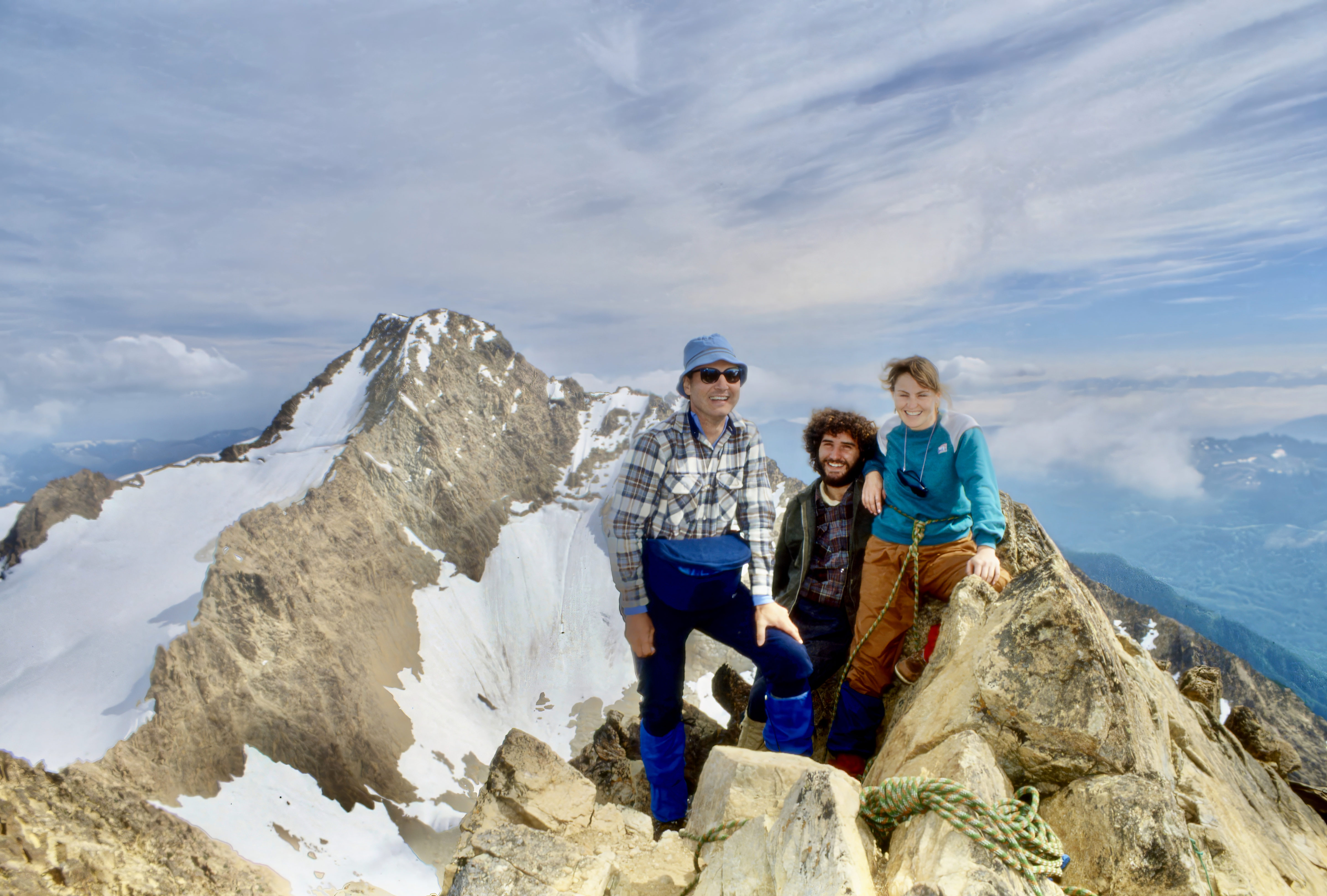 Peter, Nedjo, & Kim on the Summit of the North Twin Sister (South Twin in background) ~ July 10, 1988