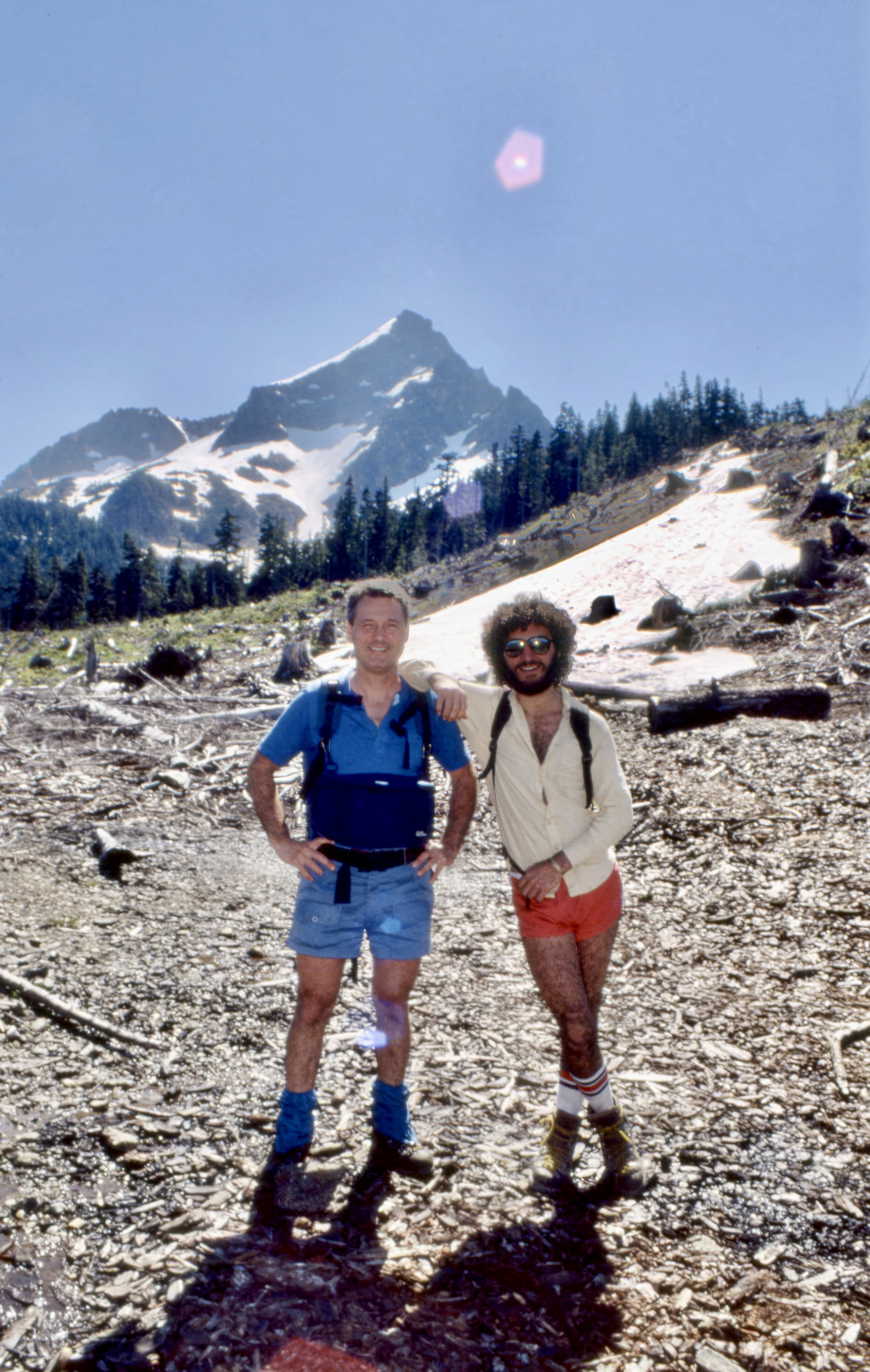 Peter & Nedjo in the Logging Slash near the Trailhead (North Twin Sister in Background) ~ July 10, 1988. Photo by Kim.