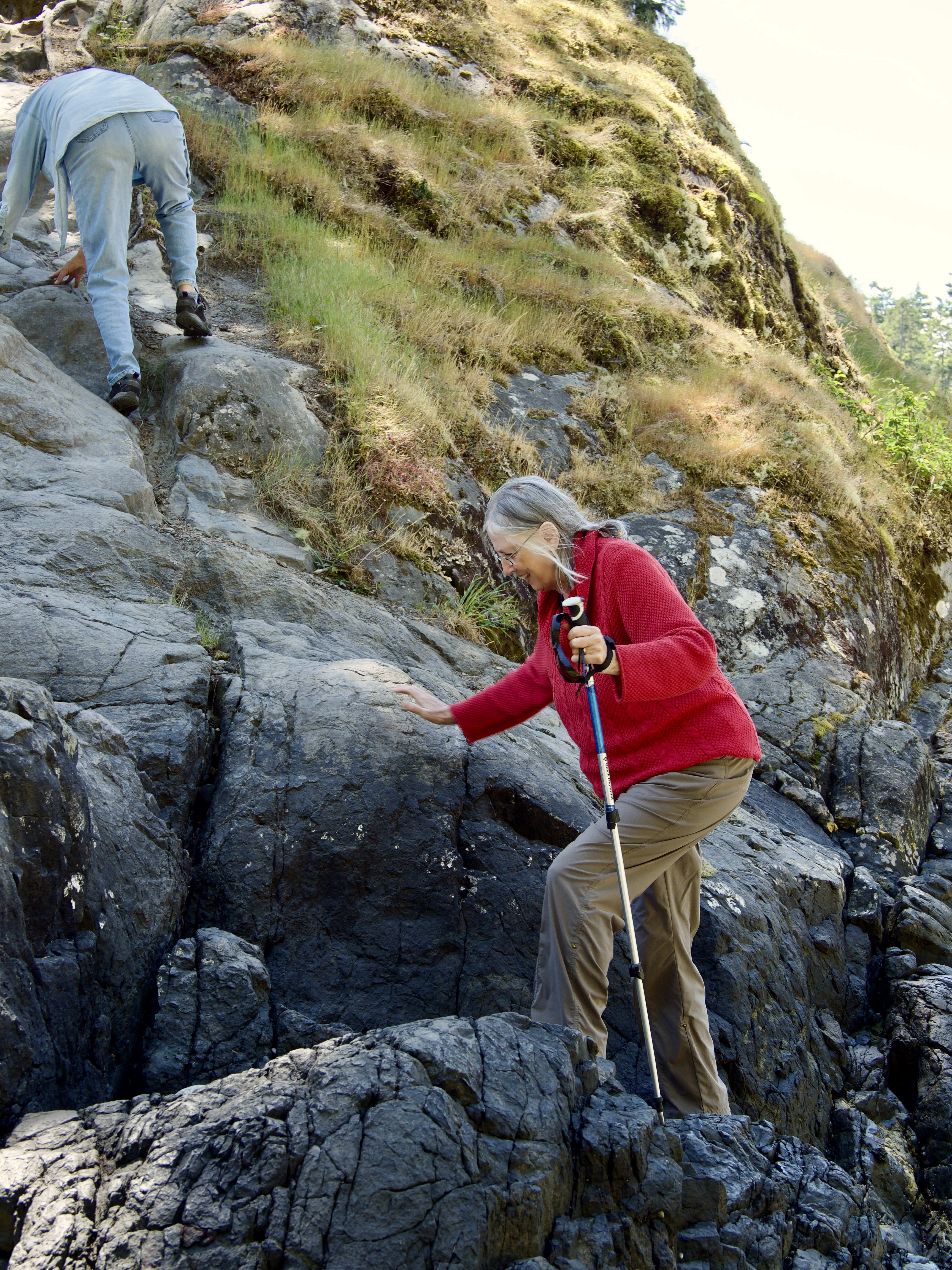 Starla & Her Friend Judy Bethel Scrambling up a Sea Stack ~ Iron Mine Bay, East Sooke Regional Park, June 2, 2018