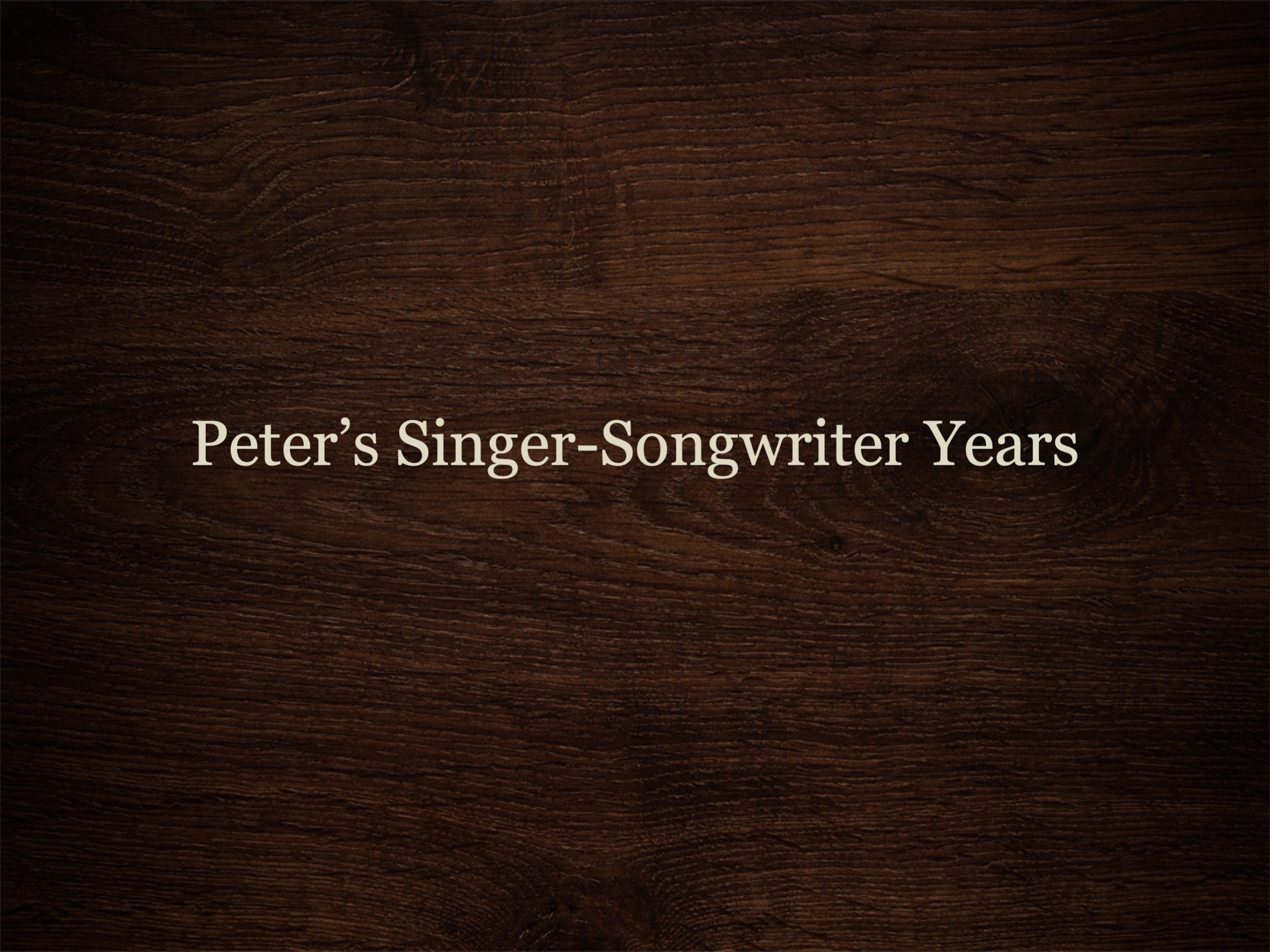 In 2015, Peter released his first (and so far only) album, featuring 12 of his original songs. To listen to them, go to the Songs page on this website.