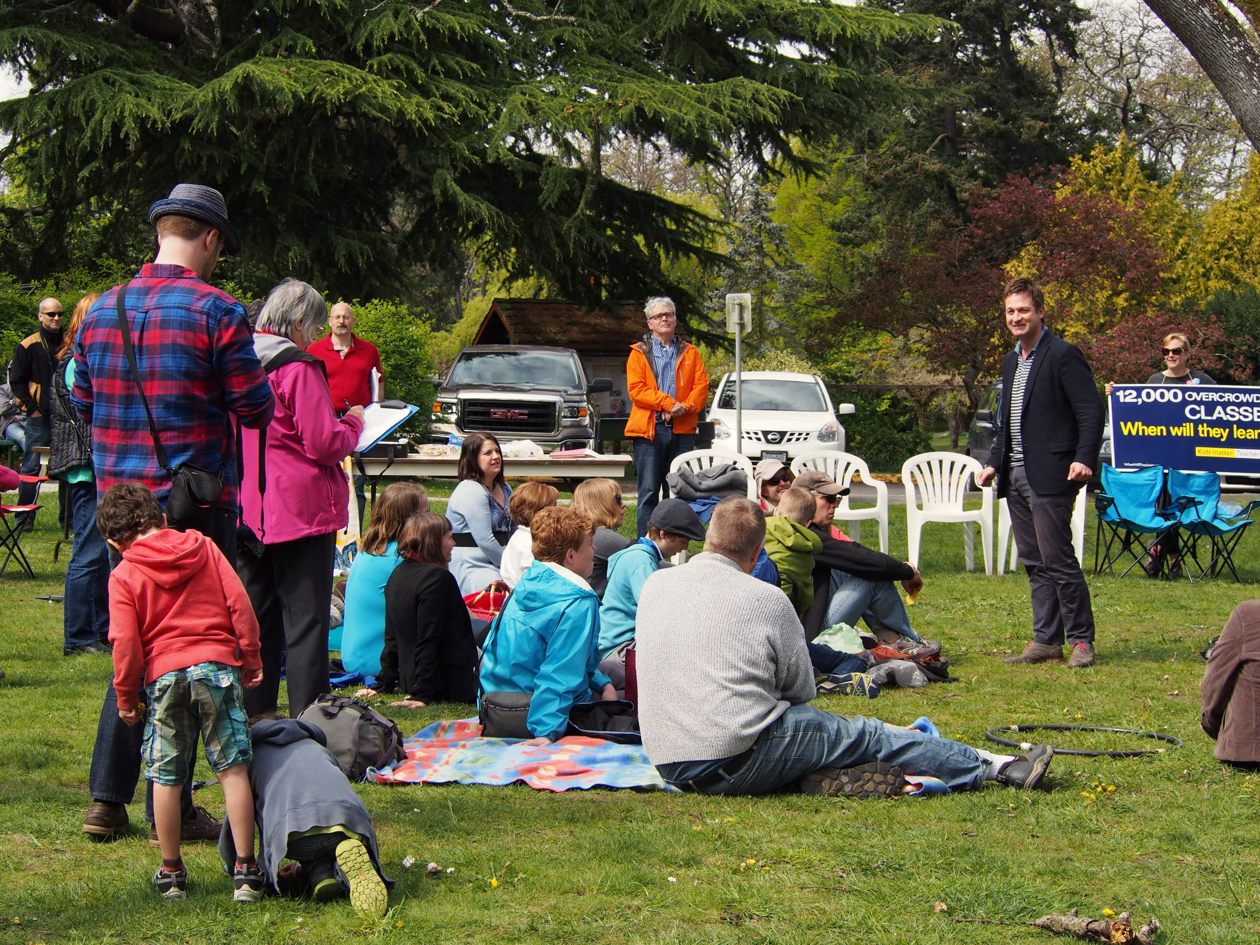 Starla (in the pink jacket) Politicking with the Victoria Public Education Coalition (VPEC) ~ Beacon Hill Park, April 12, 2015