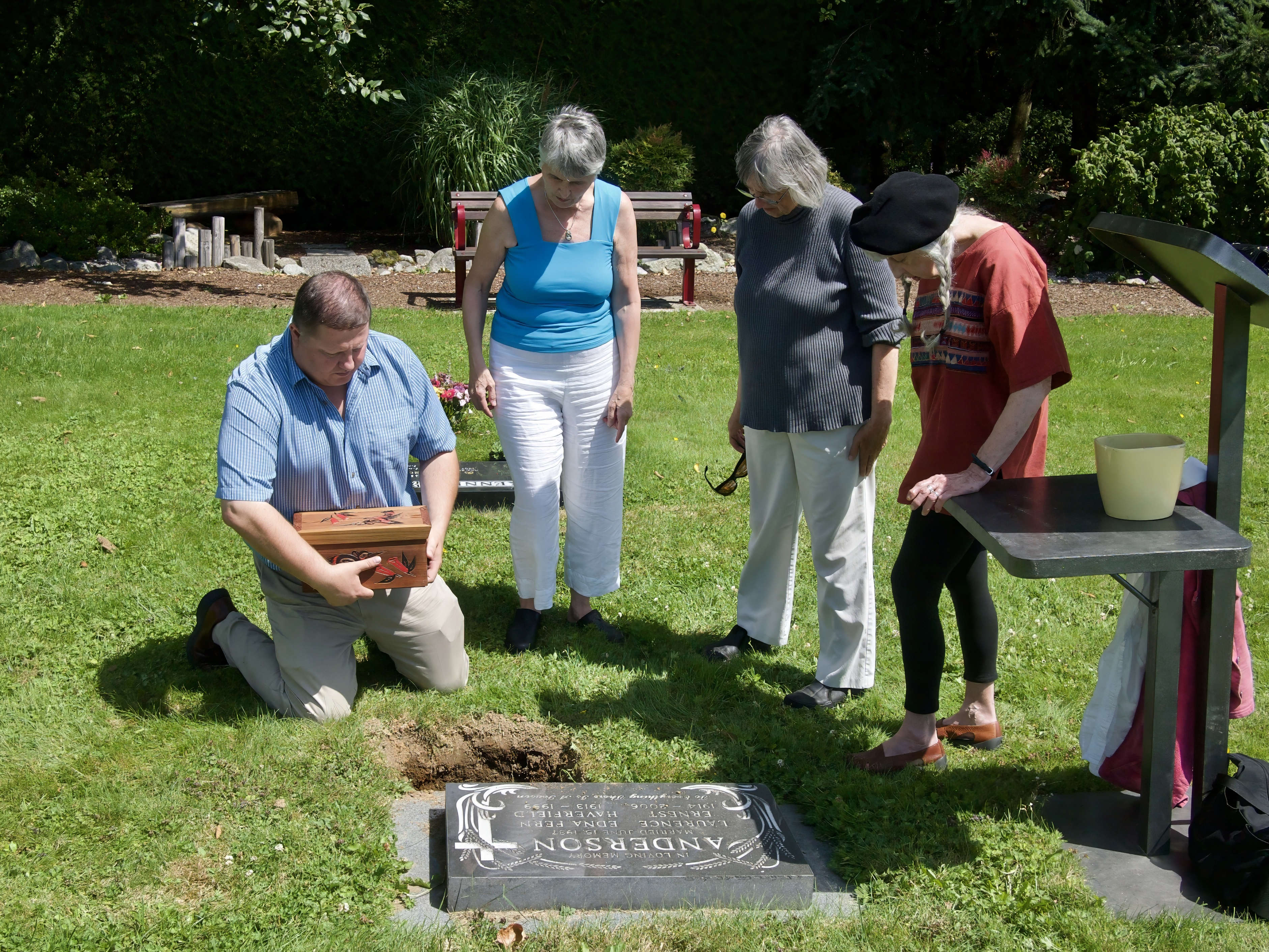 Burying Lornel’s Ashes in His Parents’ Grave ~ Stephen, Cheryl, Starla, & Karlene, July 25, 2016